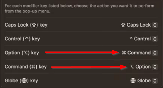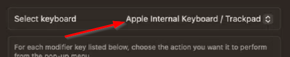 5. Select your default keyboard, the Apple Internal Keyboard / Trackpad, and switch it to the USB Receiver.